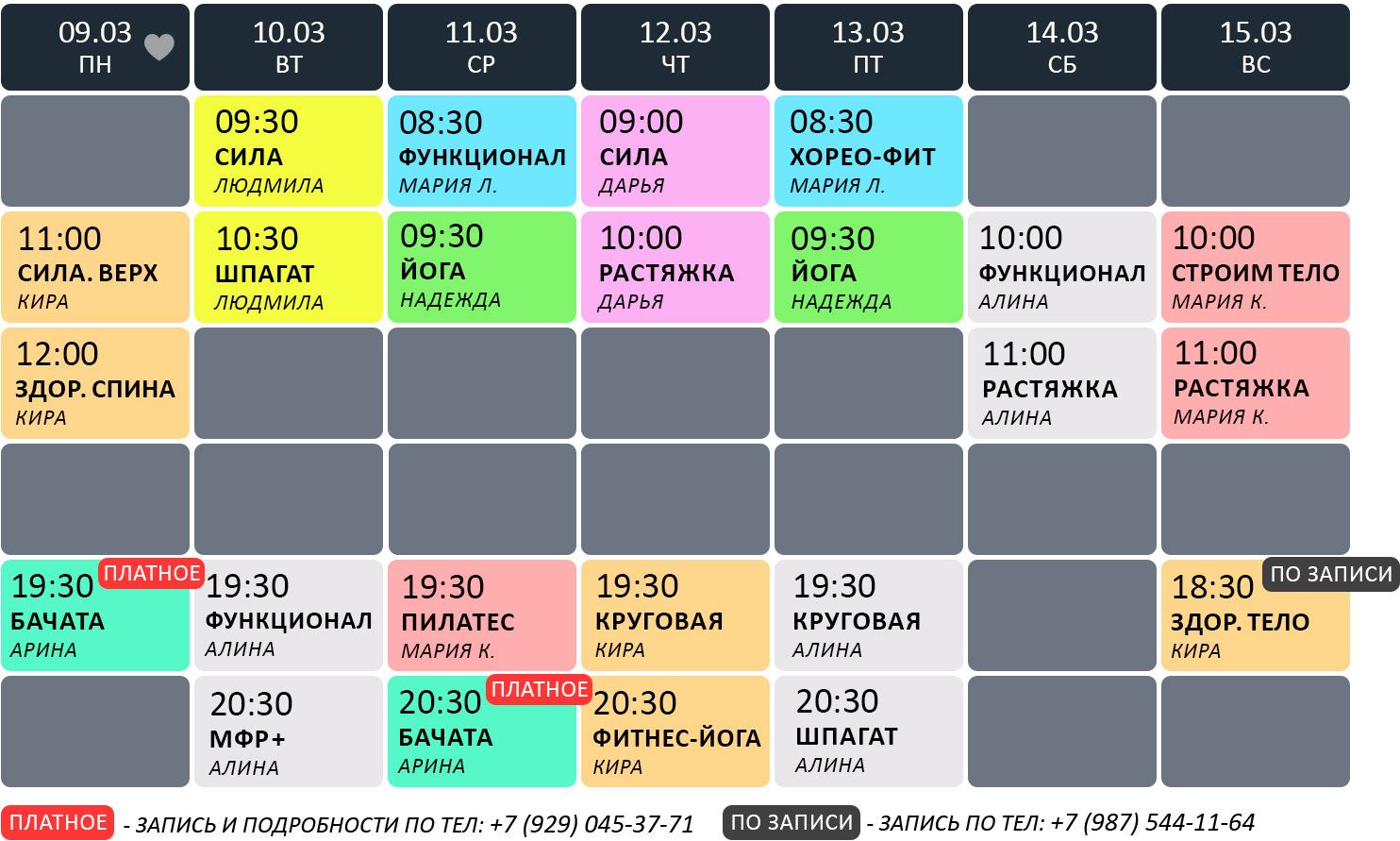 ✔ Расписание занятий обновляется каждое воскресенье в промежуток времени с 16:00 до 19:00 ВКонтакте, на сайте и на ресепшн.
